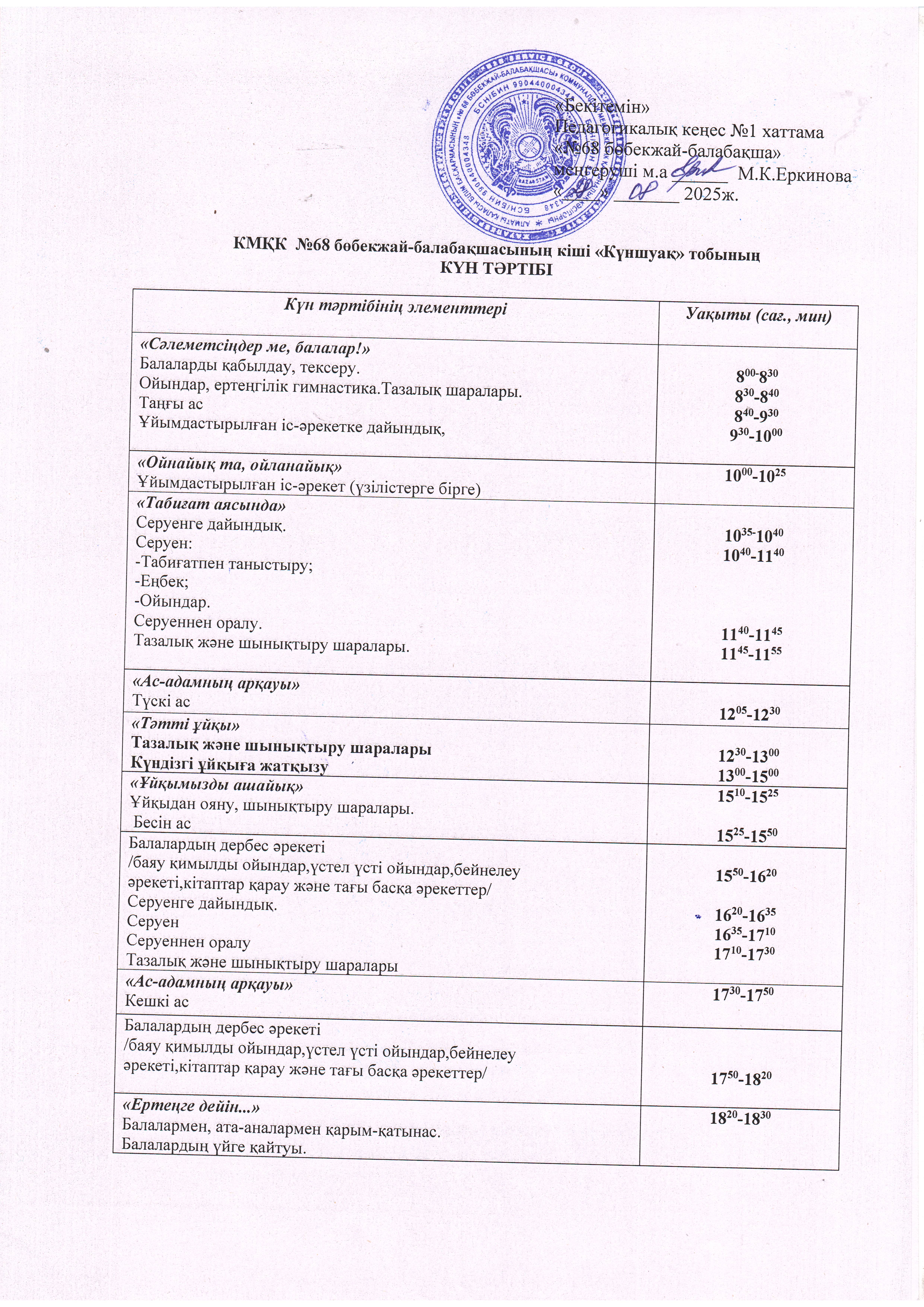 2025-2026 оқу жылының күн тәртібі