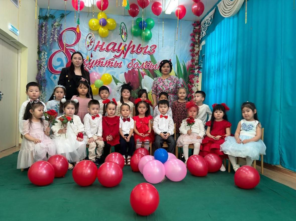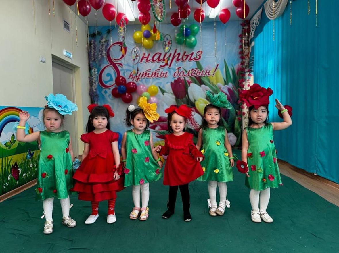 Кіші "Күншуақ" тобы аналарын әдемі гүл шақтарымен, әуезді әндерімен ертеңгілік сыйлады