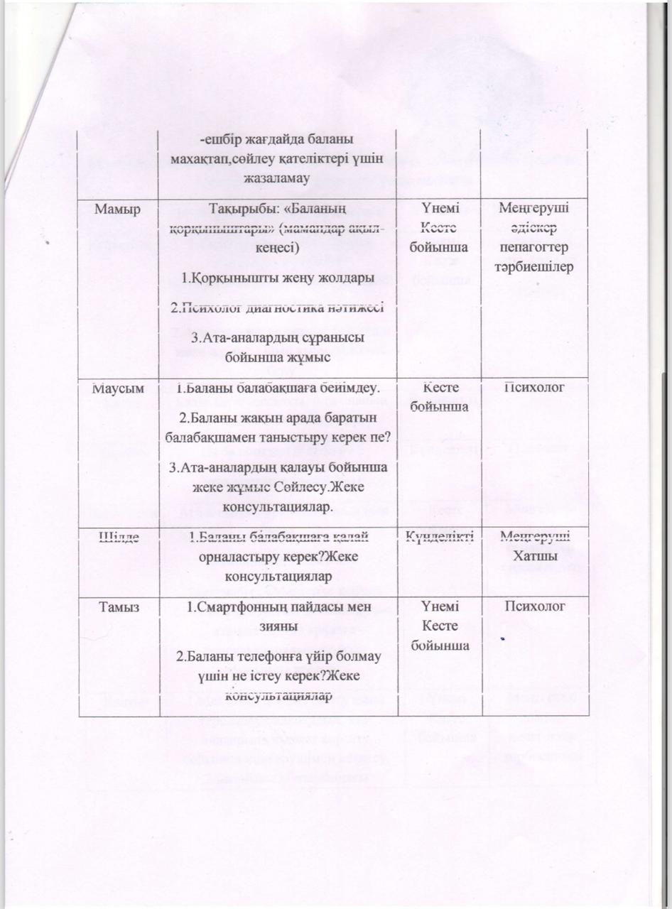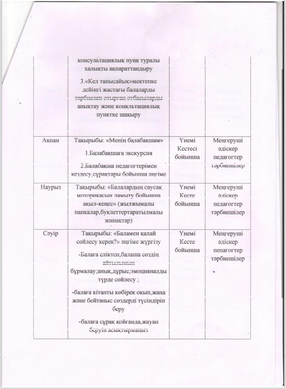 Консультациялық пункттің жұмыс жоспары
